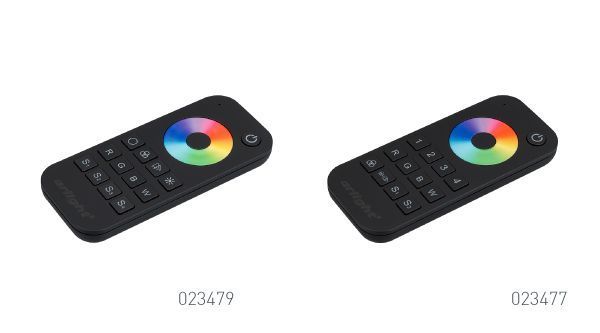 Для дистанционного управления осветительной системой из любой точки помещения можно использовать RF-пульты SMART-R26-RGBW или SMART-R28-RGBW. С помощью радиопульта можно управлять панелью Sens SMART-P2-DMX и напрямую контроллером SMART-K7-DMX.