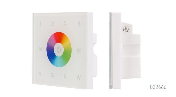 Оба пульта имеют удобное сенсорное кольцо для выбора цвета и кнопки для регулировки яркости, запуска программ и изменения их скорости. Пульт SMART-R26-RGBW позволяет управлять четырьмя независимыми световыми зонами и имеет 2 кнопки сохранения понравившихся режимов. Пульт SMART-R28-RGBW – однозонный, но при этом оснащен 4 кнопками памяти.