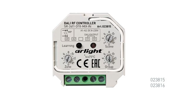 Появление конвертера RF-сигнала для пультов серии SR-2819S, который подключается на шину DALI, открывает дополнительные возможности управления MIX- и RGBW- светодиодными лентами в DALI-системах. Благодаря радиоконвертеру, управлять светом теперь можно не только с настенных или настольных DALI-панелей, а также с кнопочного выключателя и мультизонного пульта ДУ. Конвертер легко устанавливается в монтажную коробку под выключатель, предварительно настроенный на управление группами или сценами исполнительных устройств. Количество доступных для управления с пульта сцен/групп определяется количеством зон управления на пульте.