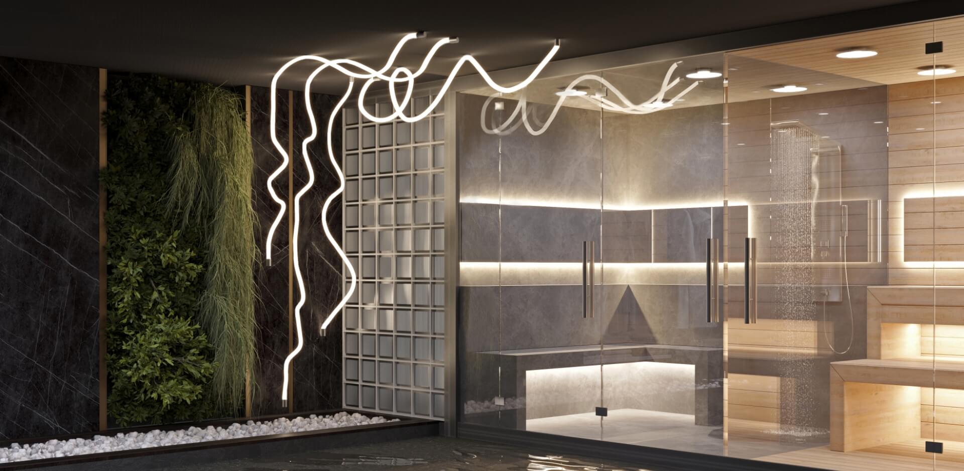 Горизонтальные и вертикальные крепления, а также регулируемые подвесы обеспечат фиксацию гибкого неона на любой высоте. Светильники из гибкого неона считаются трендом современного освещения.