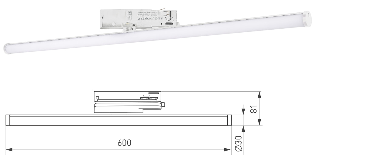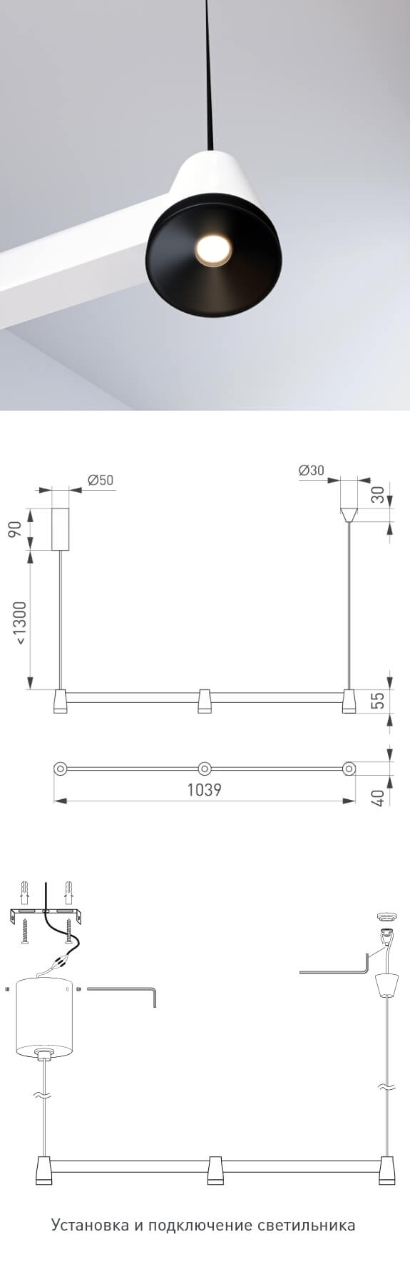 Черные и белые корпуса длиной 600 или 900 мм можно комбинировать между собой. Световой модуль способен вращаться в любую сторону относительно оси адаптера.