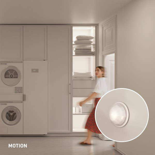 MOTION: включение света при обнаружении в зоне чувствительности движения (до 2 м) и отключение через 40 с при отсутствии движения.