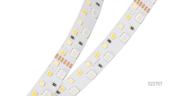 Благодаря высоким светотехническим характеристиками светодиодов SMD 2835, пятиканальная лента подходит для основного освещения в помещениях с высокими требованиями к качеству света. Лента поддерживает смену цветовой температуры в диапазоне от 2600 К до 6500 К.