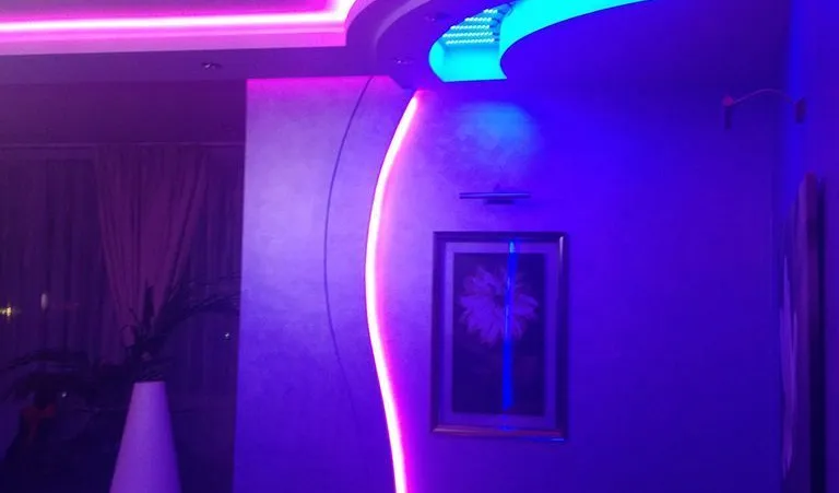 Все RGB контроллеры и блоки питания для светодиодных лент были размещены в закарнизном пространстве и скрыты от глаз.
