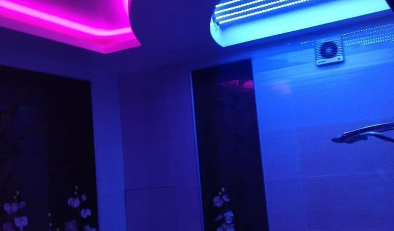 Многоцветная RGB подсветка была установлена во многочисленных нишах во всех частях квартиры: прихожей, гостиной, спальных комнатах и даже ванной.