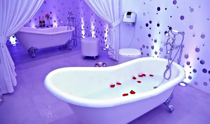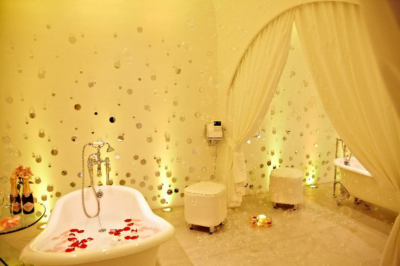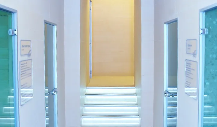 Атмосфера умиротворенности чувствуется в каждом помещении SPA-центра. Настроение передается с помощью света и цвета. Стены и ступени, обрамленные светодиодной лентой, выглядят словно парящими в воздухе. Качественная декоративная подсветка преображает интерьер, позитивно влияет на самочувствие и настраивает гостей на спокойный отдых.