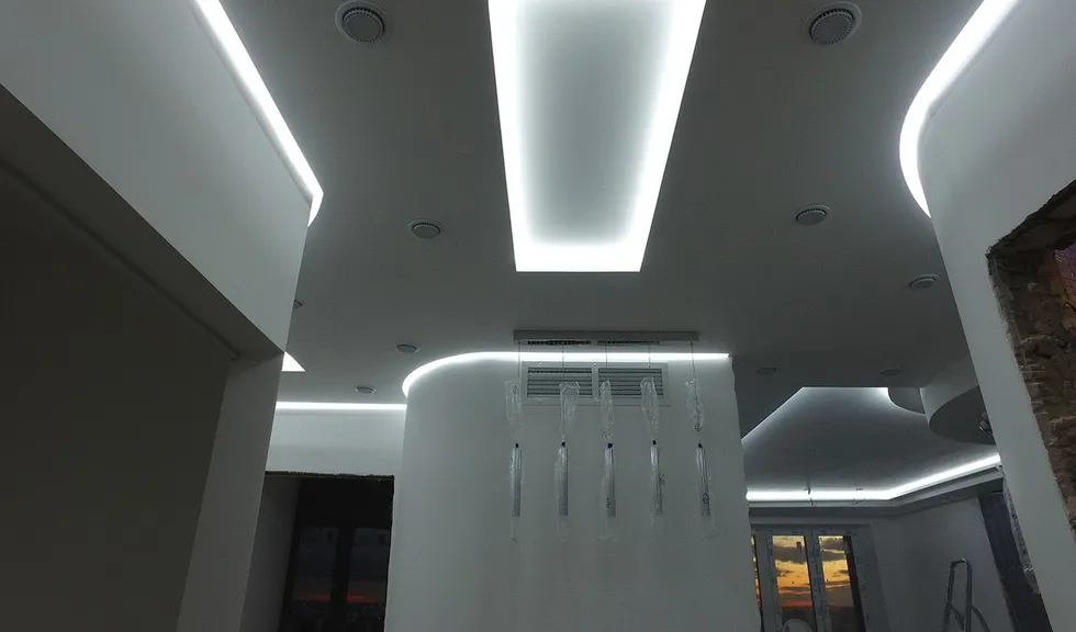 Блоки, обеспечивающие питание светодиодных лент, разместили в специально сделанных для них отсеках под потолком, закрытых потайными лючками.
