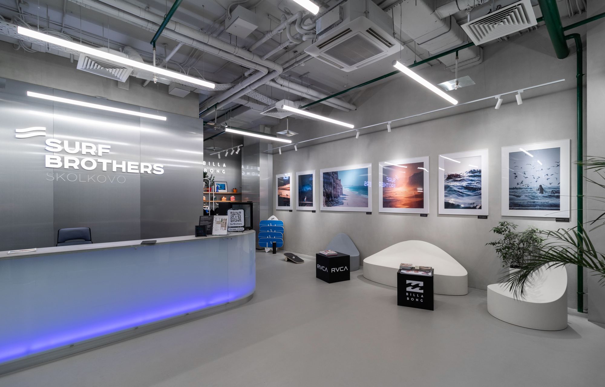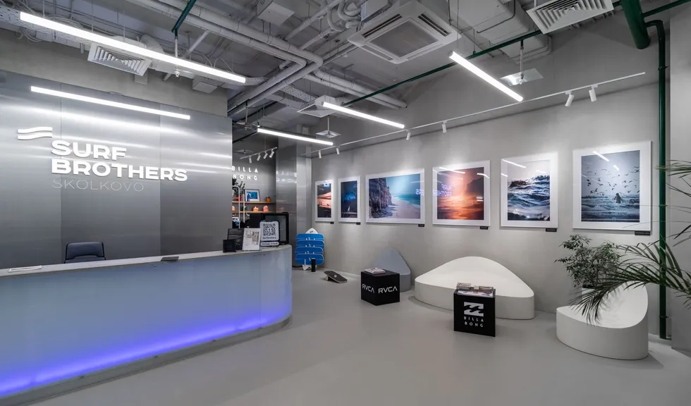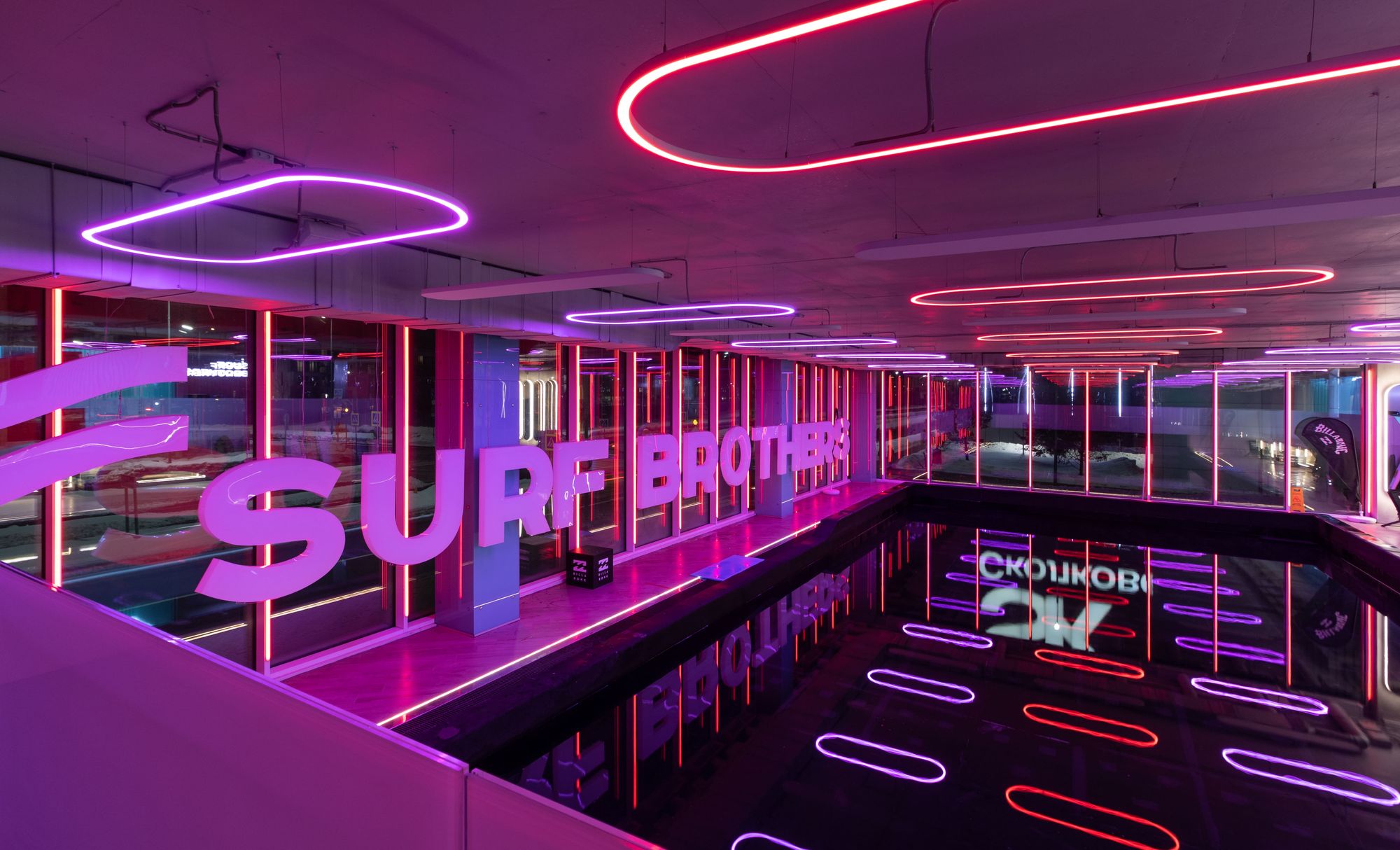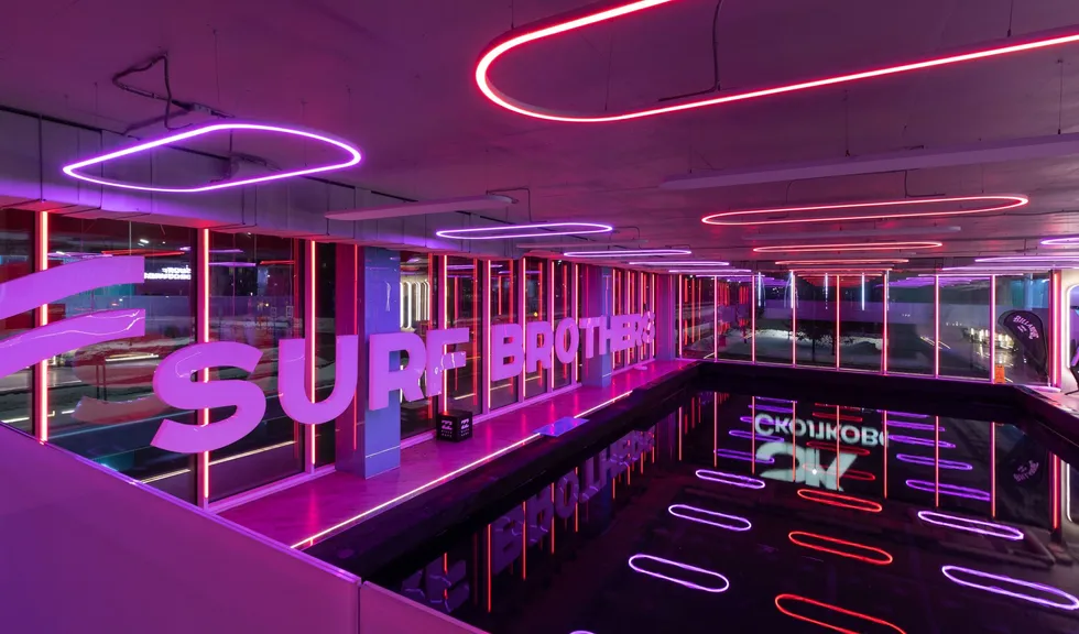 Серфинг-центр в Сколково занимает площадь 2800 кв. м и является примером грамотно спланированного пространства.