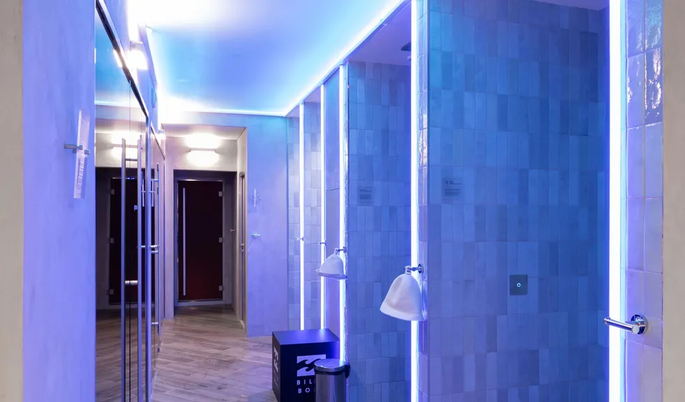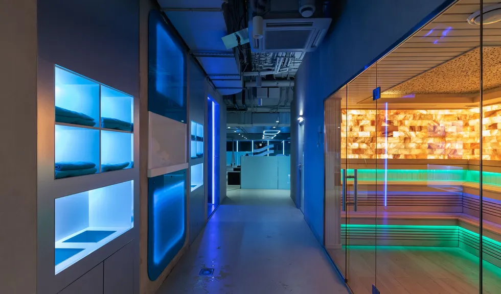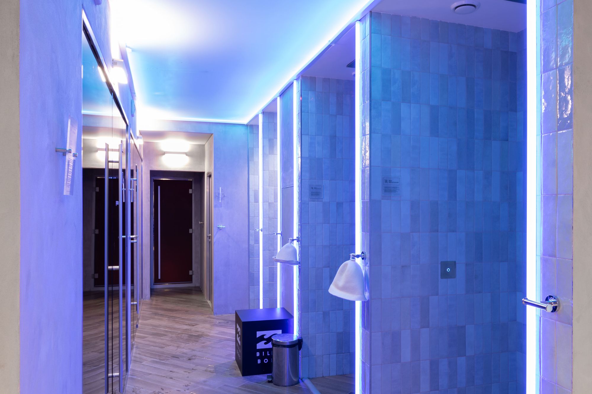 Современный дизайн и продуманные до мелочей сценарии освещения. Свет в этом проекте впечатляет вариативностью решений и оригинальными сочетаниями. «Море цвета и света» становится девизом клуба. Вода, отражающая свет RGB-лент, превращается в полотно для красочных рисунков.
