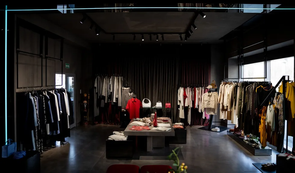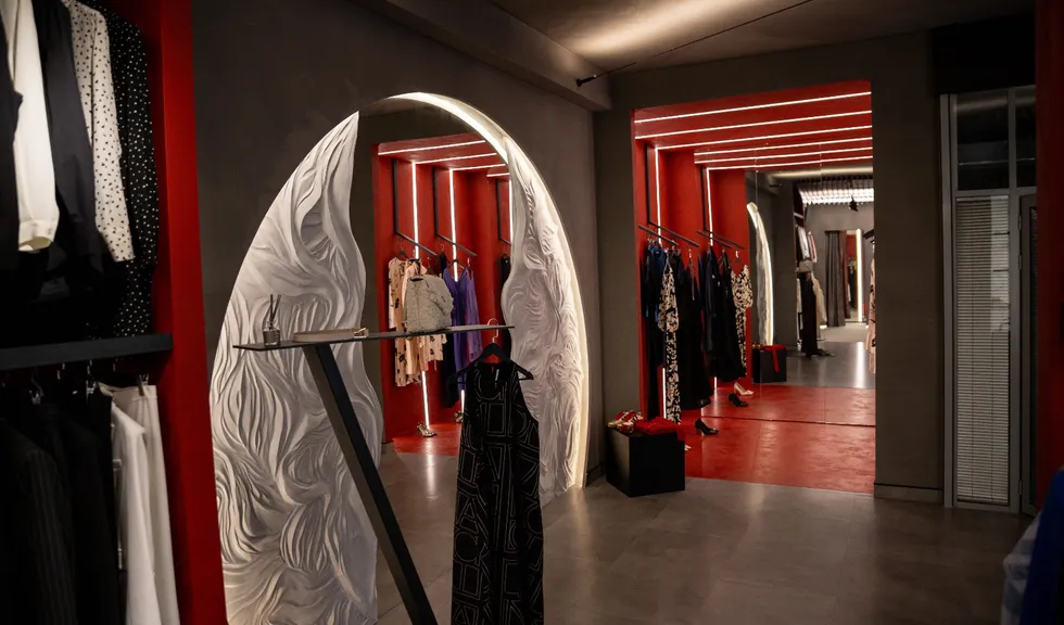 Контурная LED-подсветка добавляет пространству глубины: она обрамляет ниши, стеллажи и декоративные элементы, визуально разделяя зоны и придавая интерьеру современный лоск. Теплый свет в примерочных создает комфорт, а нейтрально-белое освещение в торговой зоне обеспечивает точную цветопередачу.