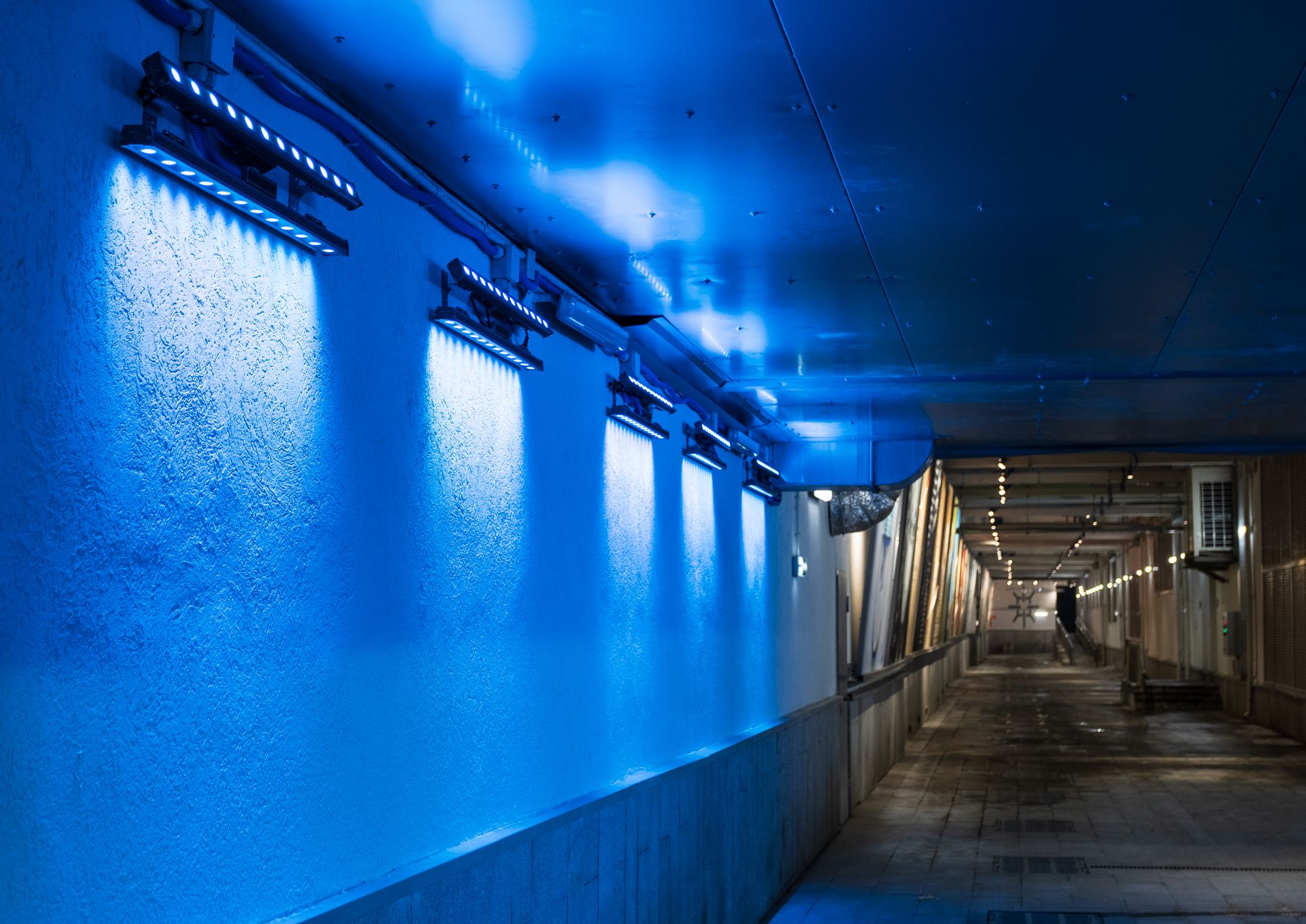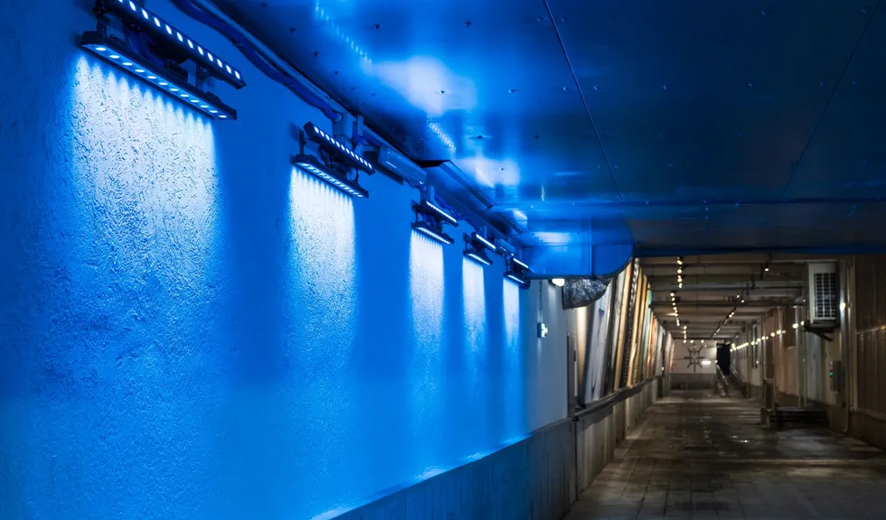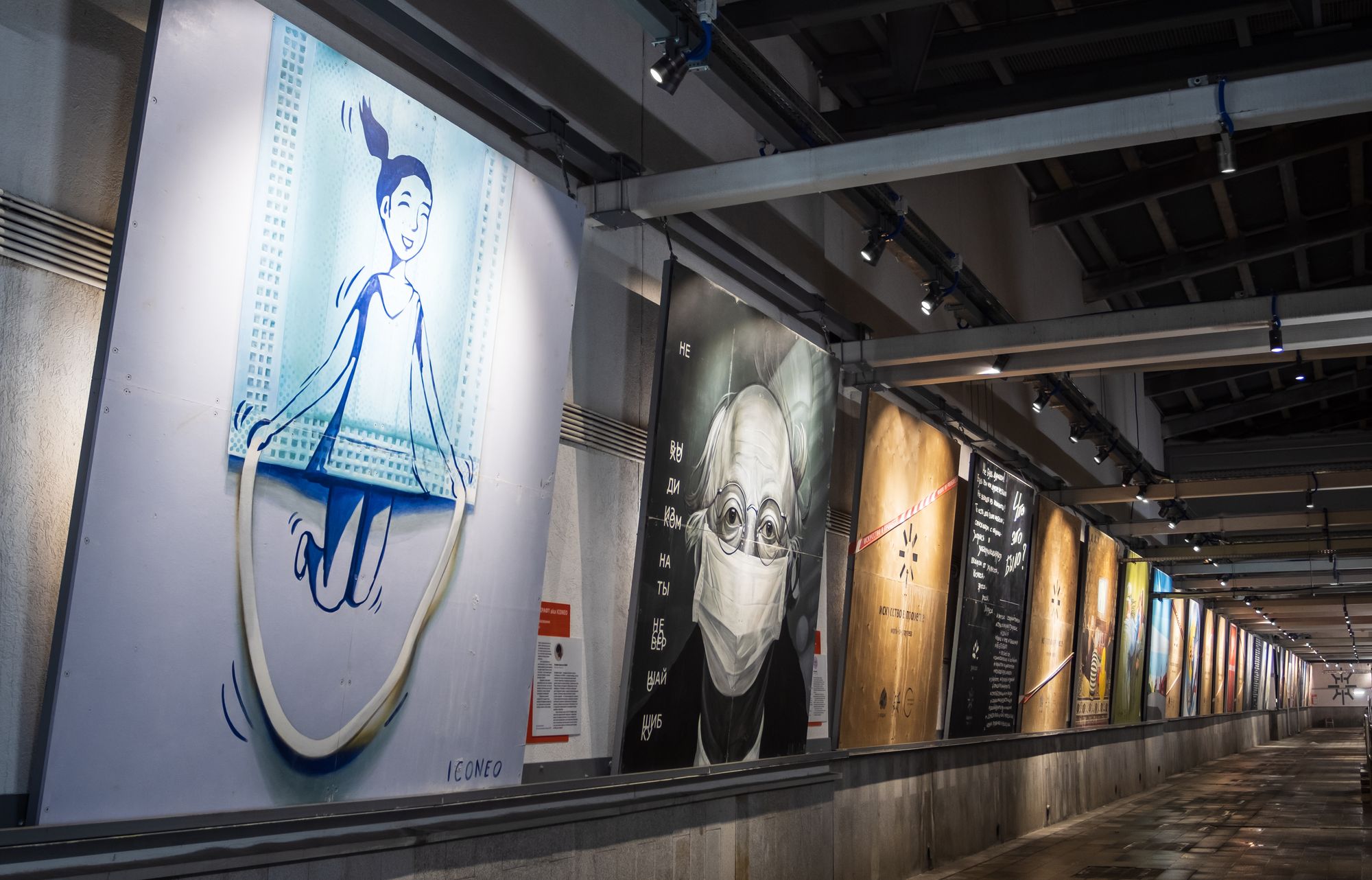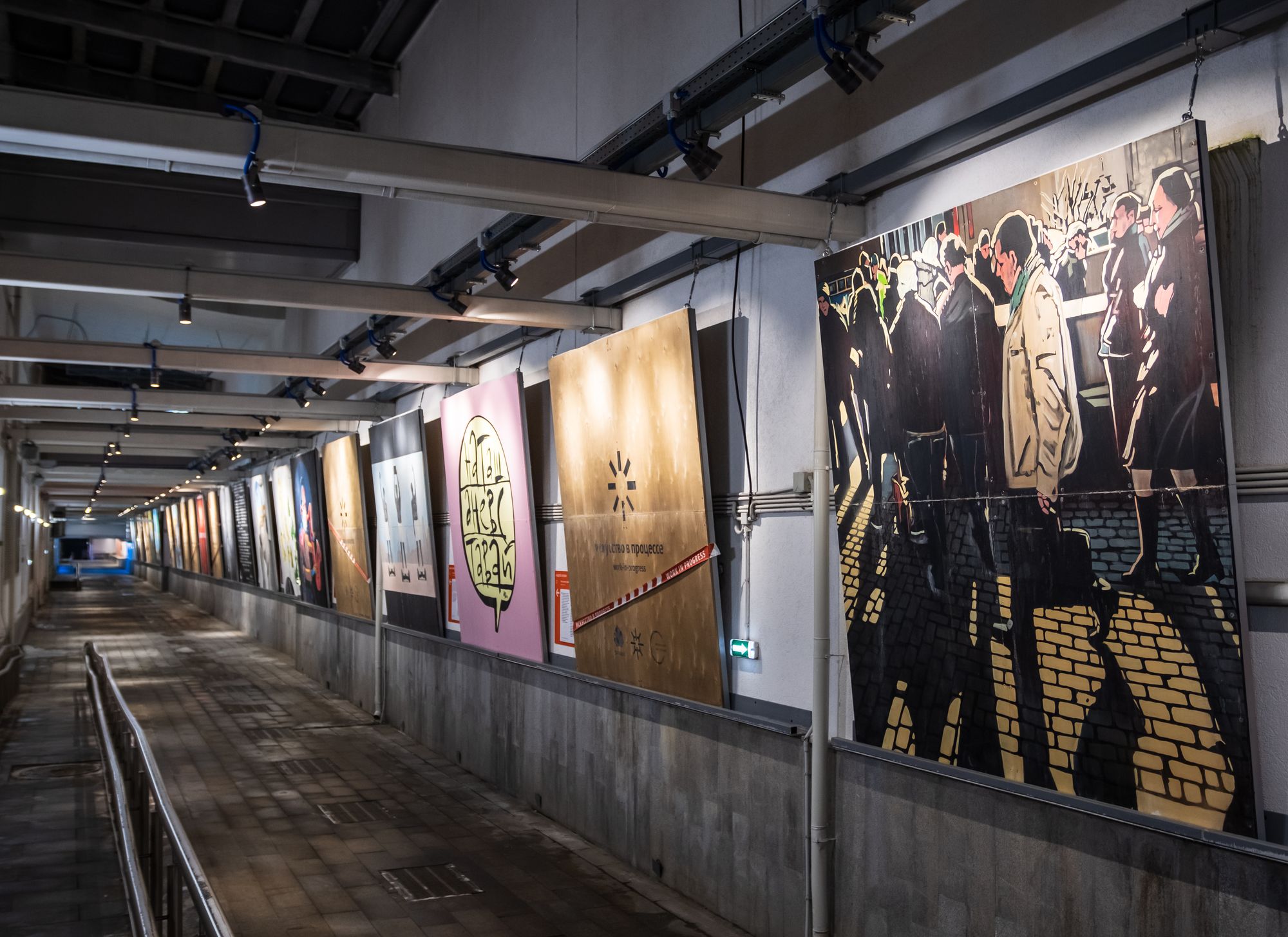Открытая галерея уличного искусства освещена влагозащищенными ударопрочными светильниками и прожекторами с экраном из закаленного стекла. Вандалозащищенное светодиодное оборудование — идеальное решение для создания безопасного и качественного уличного освещения. Корпус светильников поворачивается, что очень удобно при перенаправлении света на разные объекты выставки. Светильники выполнены в холодной цветовой гамме и гармонично смотрятся в пространства в стиле лофт. Светильники не только выполняют роль основного освещения, но и акцентируют внимание на картинах с помощью интересных световых переходов.