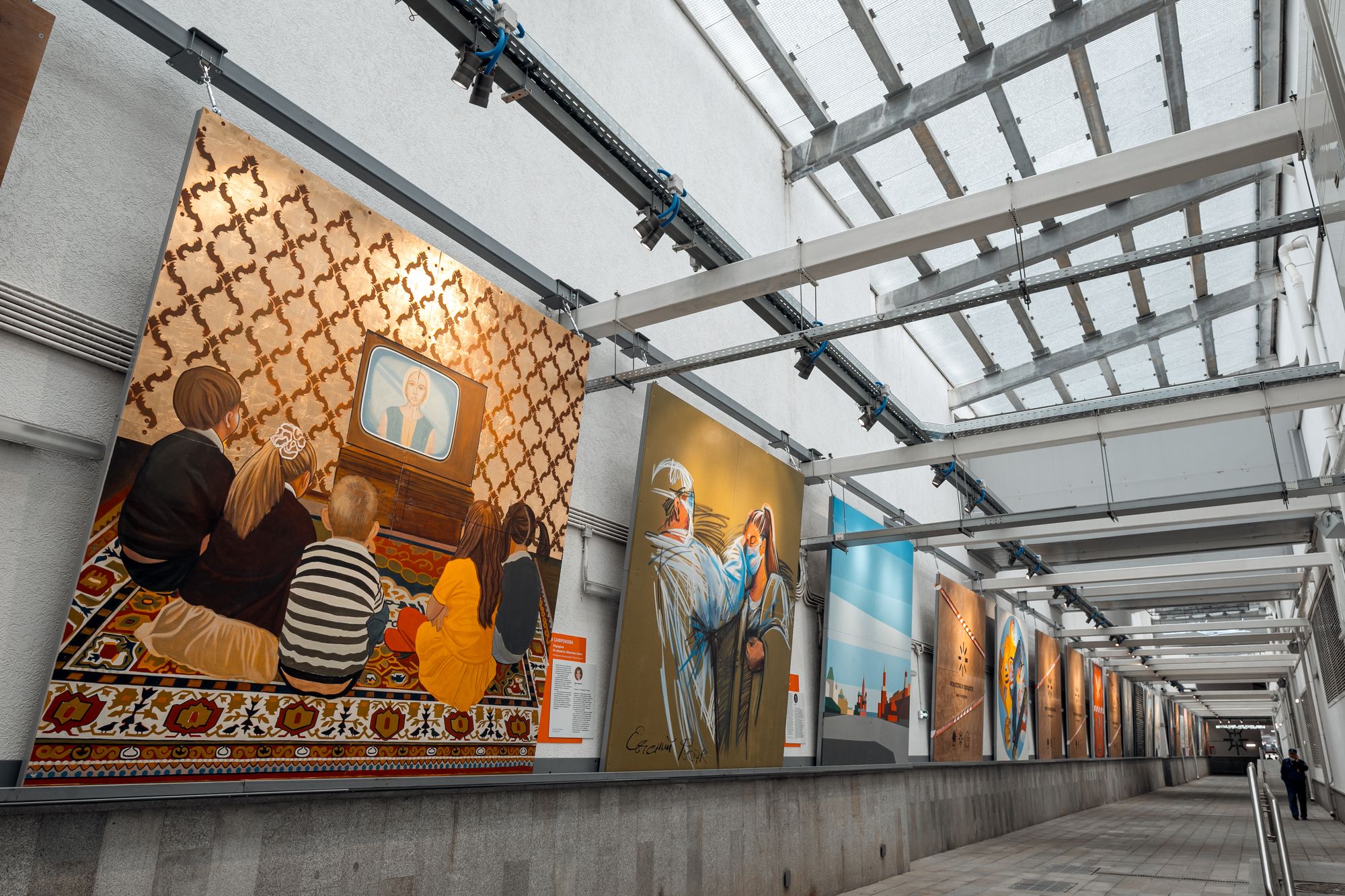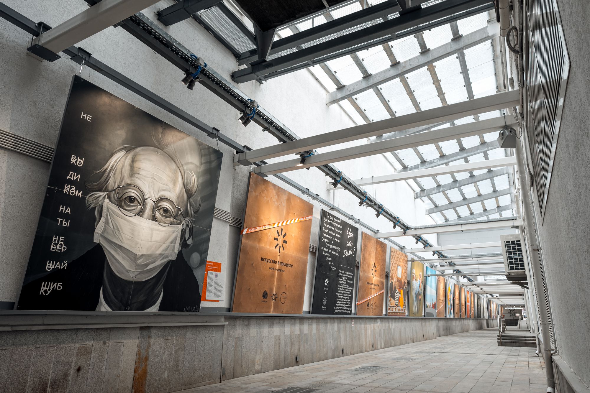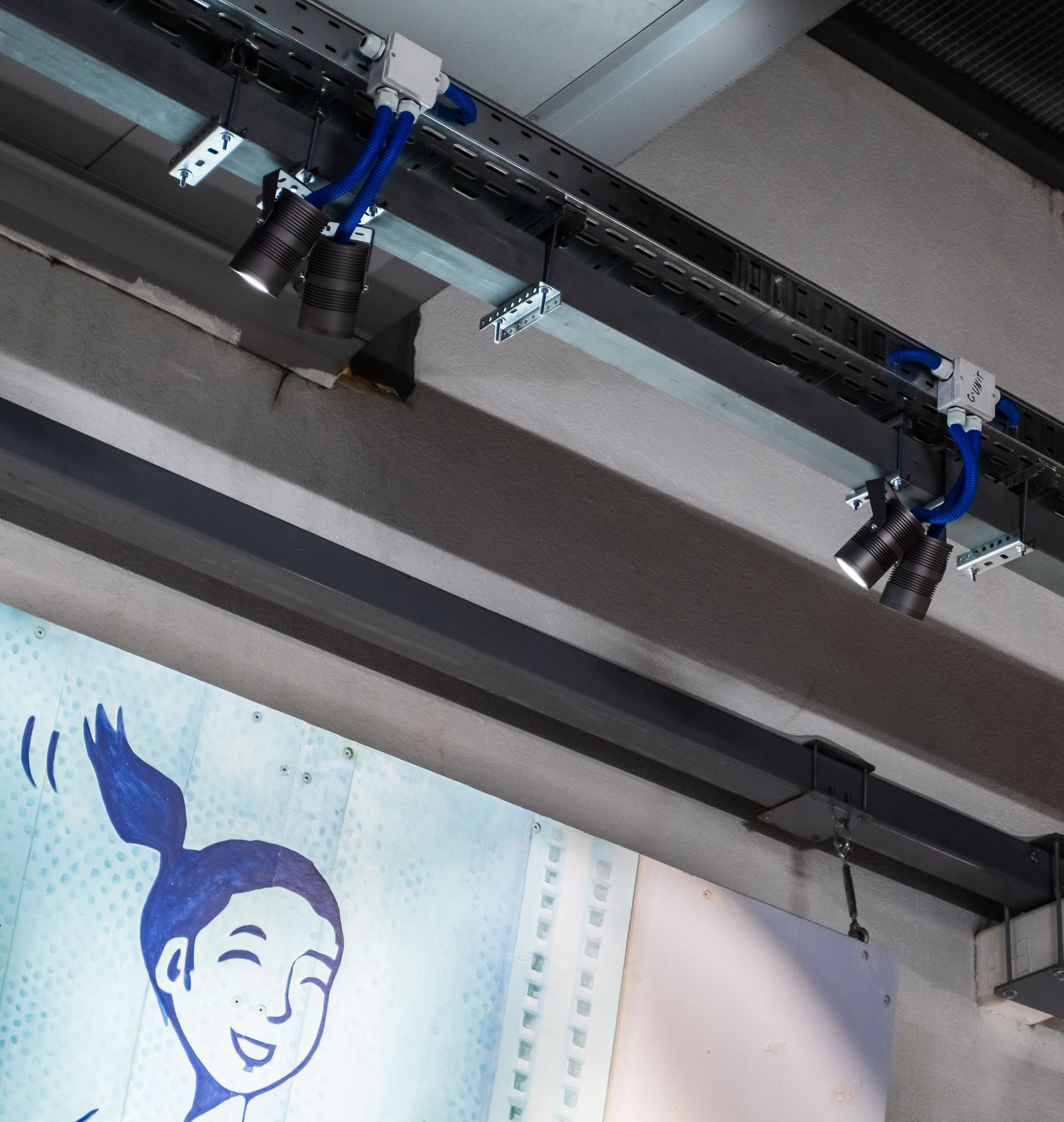 Открытая галерея уличного искусства освещена влагозащищенными ударопрочными светильниками и прожекторами с экраном из закаленного стекла. Вандалозащищенное светодиодное оборудование — идеальное решение для создания безопасного и качественного уличного освещения. Корпус светильников поворачивается, что очень удобно при перенаправлении света на разные объекты выставки. Светильники выполнены в холодной цветовой гамме и гармонично смотрятся в пространства в стиле лофт. Светильники не только выполняют роль основного освещения, но и акцентируют внимание на картинах с помощью интересных световых переходов.