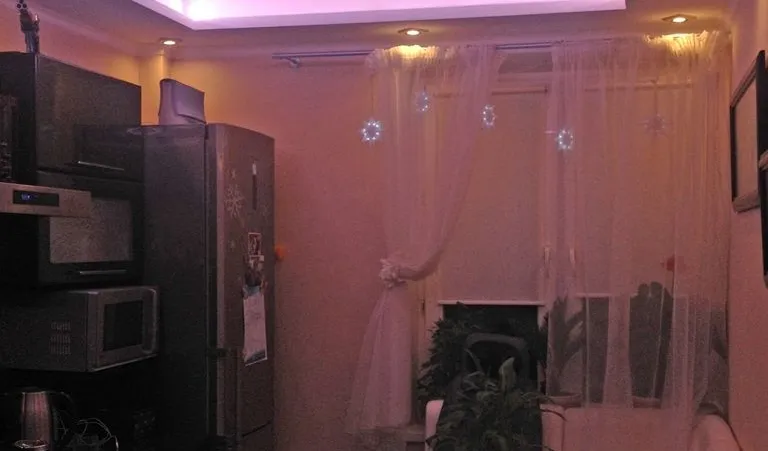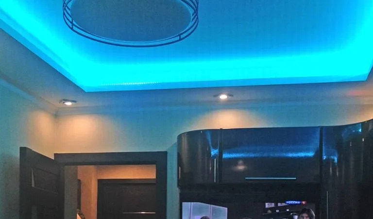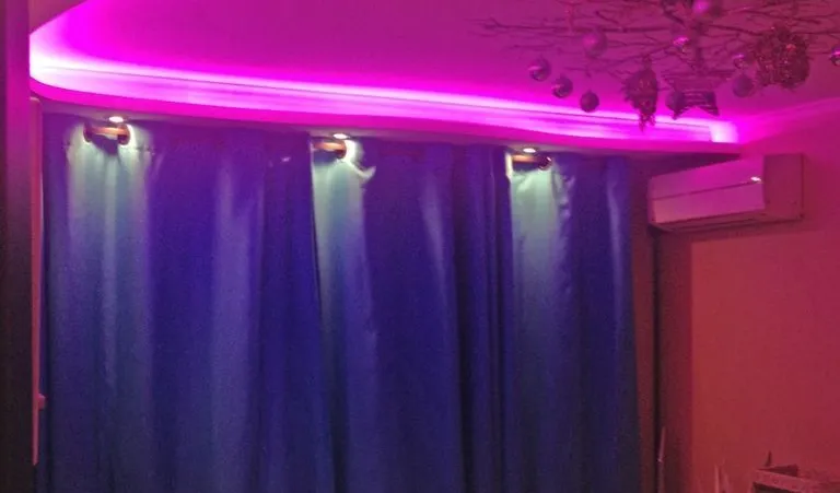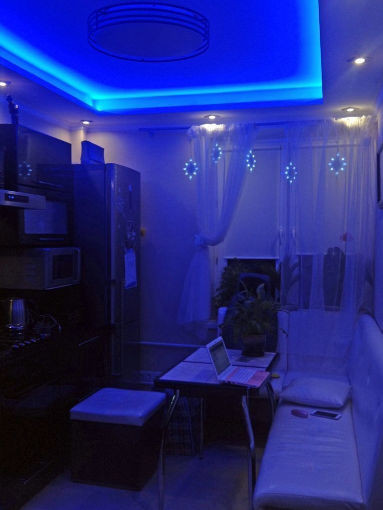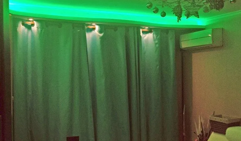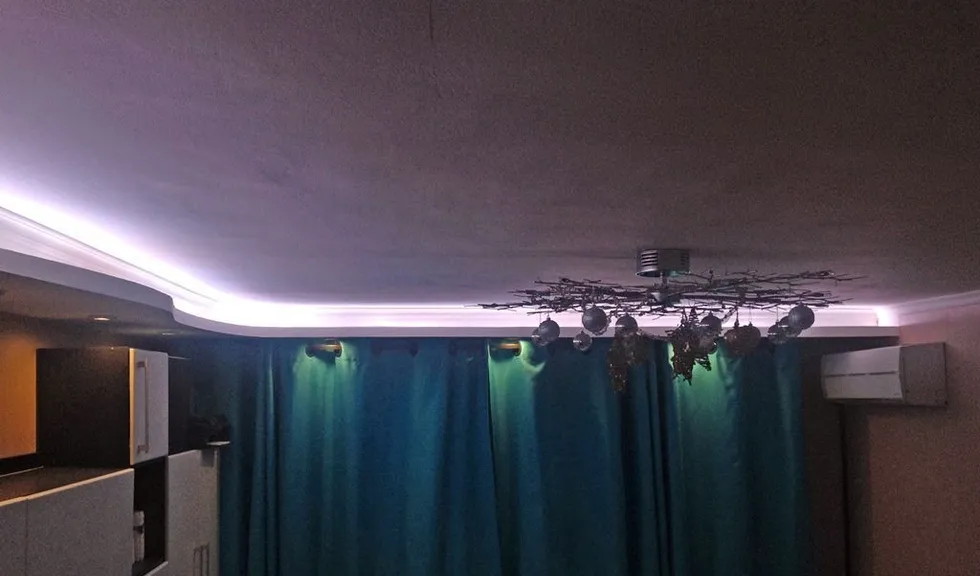 Декоративная закарнизная подсветка в квартире добавит новые нотки в интерьер. Применение многоцветной светодиодной ленты arlight® и RGB контроллера arlight® дает возможность добавить новые краски и подстроить обстановку под настроение.