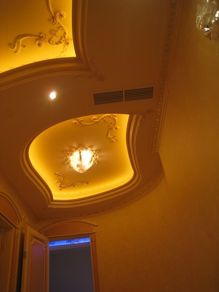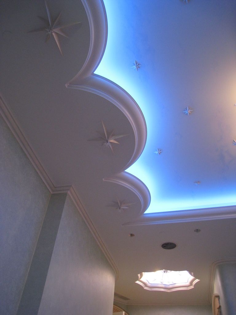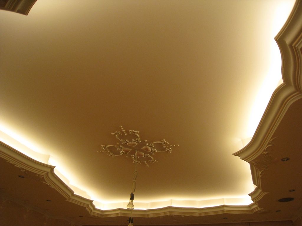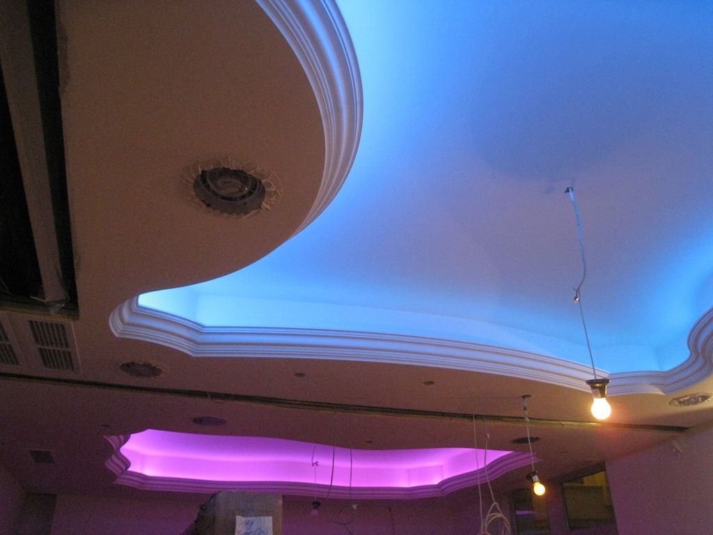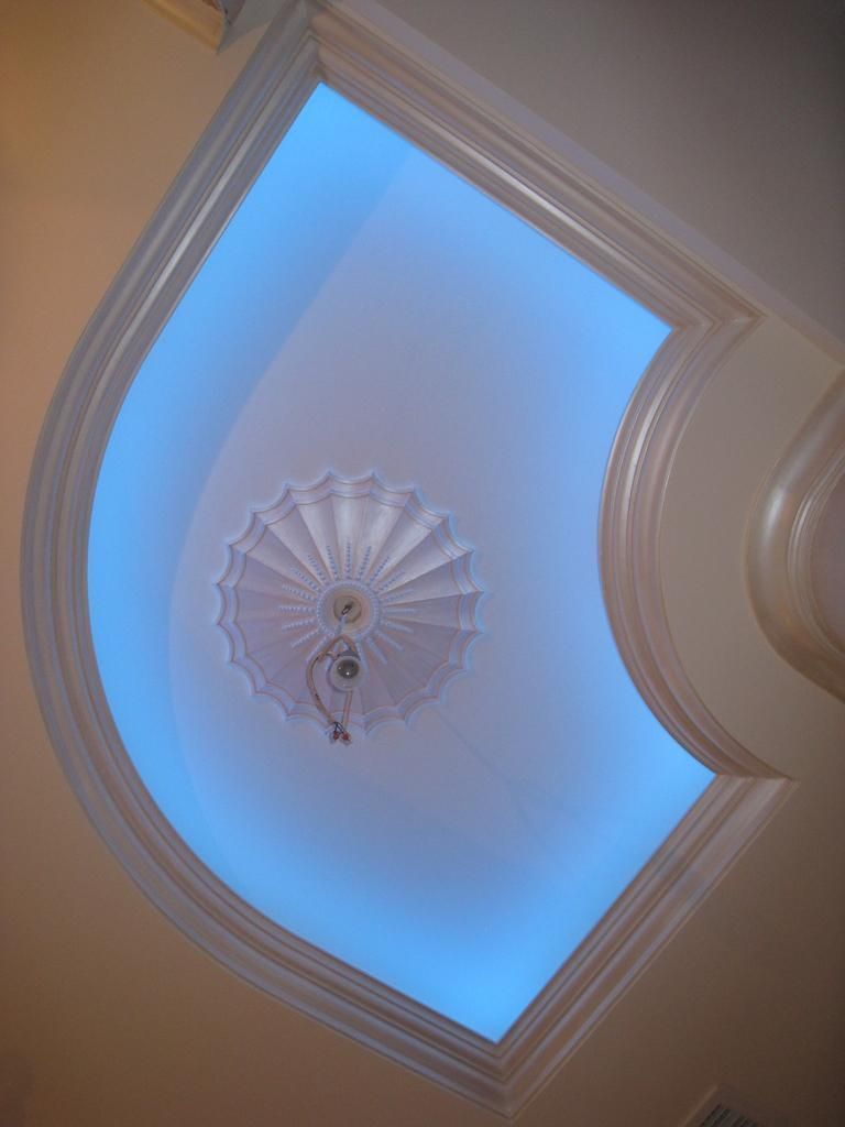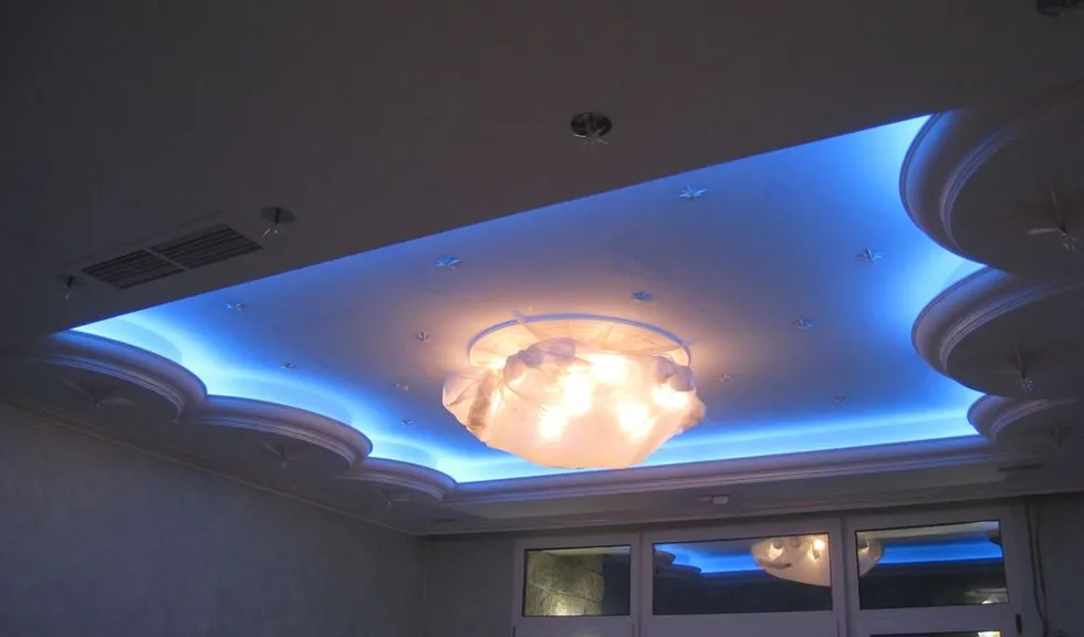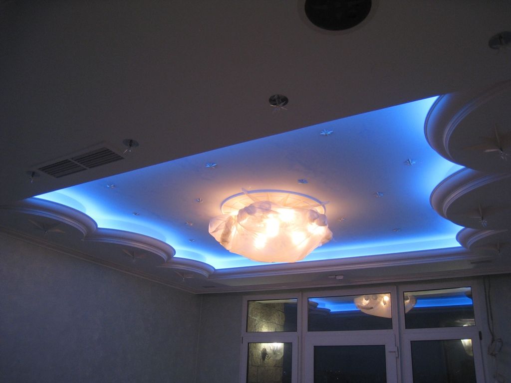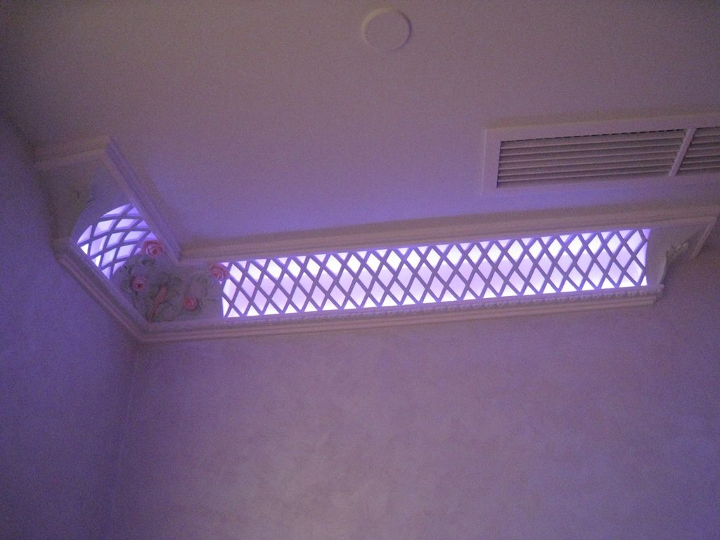 Светодиодная подсветка декоративных элементов потолка в квартире