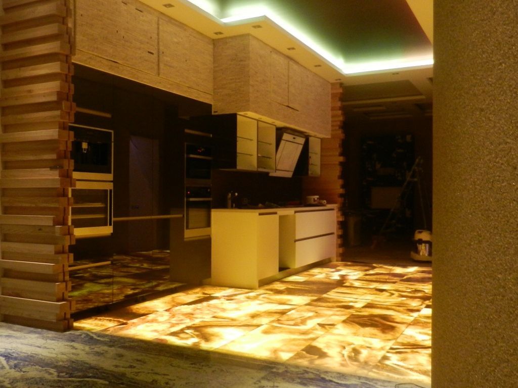 • Влагостойкая светодиодная лента arlight® - самый простой, быстрый и экономичный способ. Лента просто наклеивается на дно навесного шкафа.