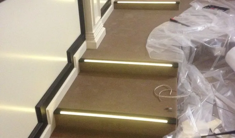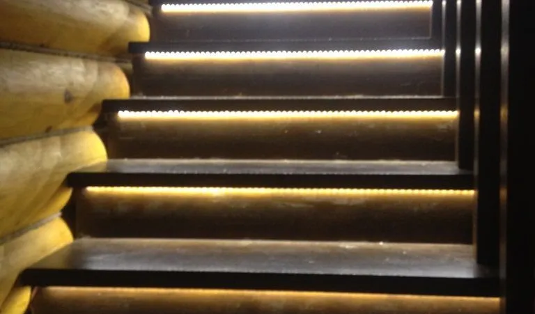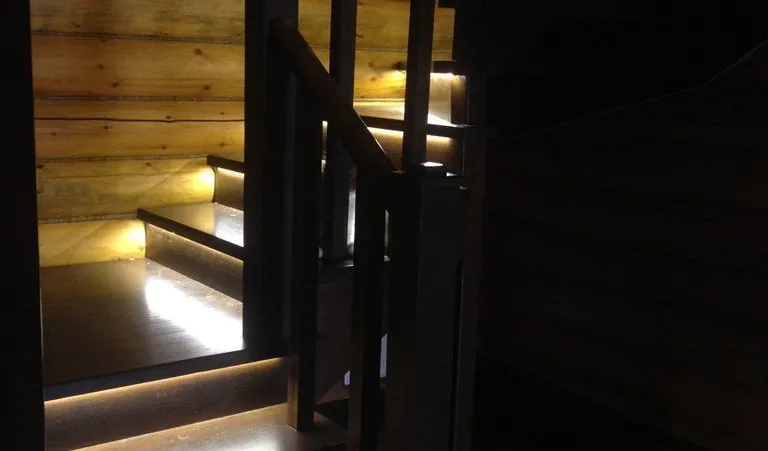Светодиодная подсветка лестниц, выполняет сразу две функции - с одной стороны является декоративным элементом интерьера, с другой стороны обеспечивает безопасность передвижения в темное время. Вариантов расположения подсветки очень много. Это размещение на поверхности ступени светодиодной ленты в специальном алюминиевом профиле, расположение светодиодной ленты под ступенями, монтаж вдоль всей лестницы в стены или на перила. Для удобства и экономии электроэнергии можно также применить различные датчики управления освещением - микроволновые, инфракрасные и фотореле. В данном проекте подсветка лестниц выполнена с применением светодиодного оборудования торговой марки arlight®.