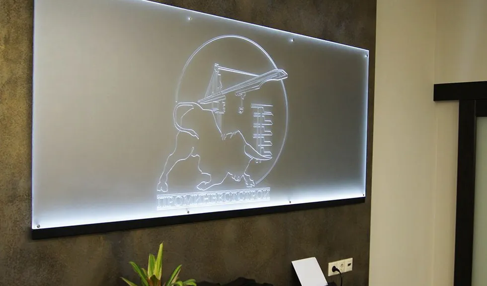 Первый тип - торцевая подсветка стекла или оргстекла (плексигласа). Но поверхности материла производится лазерная гравировка надписи, узора или рисунка, а светодиодная лента устанавливается с торцевой части стекла. При такой установке светятся только выгравированные элементы.