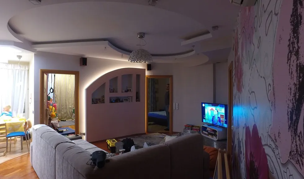 Данная подсветка имеет декоративный характер и используется для выделения ниши от основной поверхности стены. Лампа и проводка демонтированы, определены места установки ленты. После включения подсветки результат превзошёл ожидание хозяев квартиры, свечение стало абсолютно равномерным, без затемнённых участков, и при этом без избыточной яркости, т.к. выбрана светодиодная лента smd3528 30 светодиодов на метр.